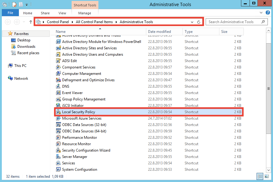 Control Panelinizden Administrative Tools sekmesine giriş yapıp Local Security Policy i seçelim.