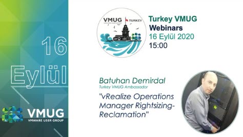 Batuhan Demirdal, Turkey VMUG Ambassador will tell about “vRealize Operations Manager Rightsizing-Reclamation” on this webinar. Date : 16 Eylül 2020 Time : 15.00 Register: forms.gle/GwpKuFHrEWmrRZ