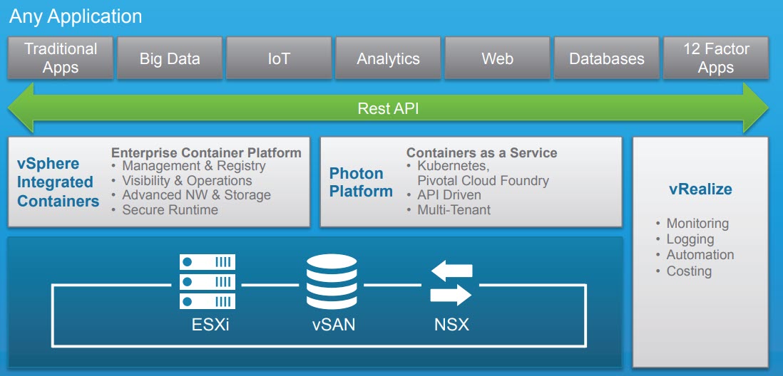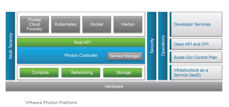 • Platform as a Service: Photon Platformu, Pivotal Cloud Foundry ile entegre olarak bulut için uygulamalar oluşturur ve ölçeklendirir.