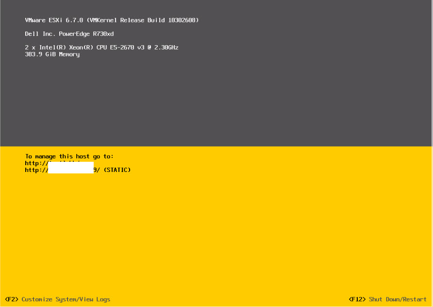 Aşağıdaki resimde’de gördüğünüz üzere gelen ESXi sayfasında F2 ve F12 komutları mevcuttur.