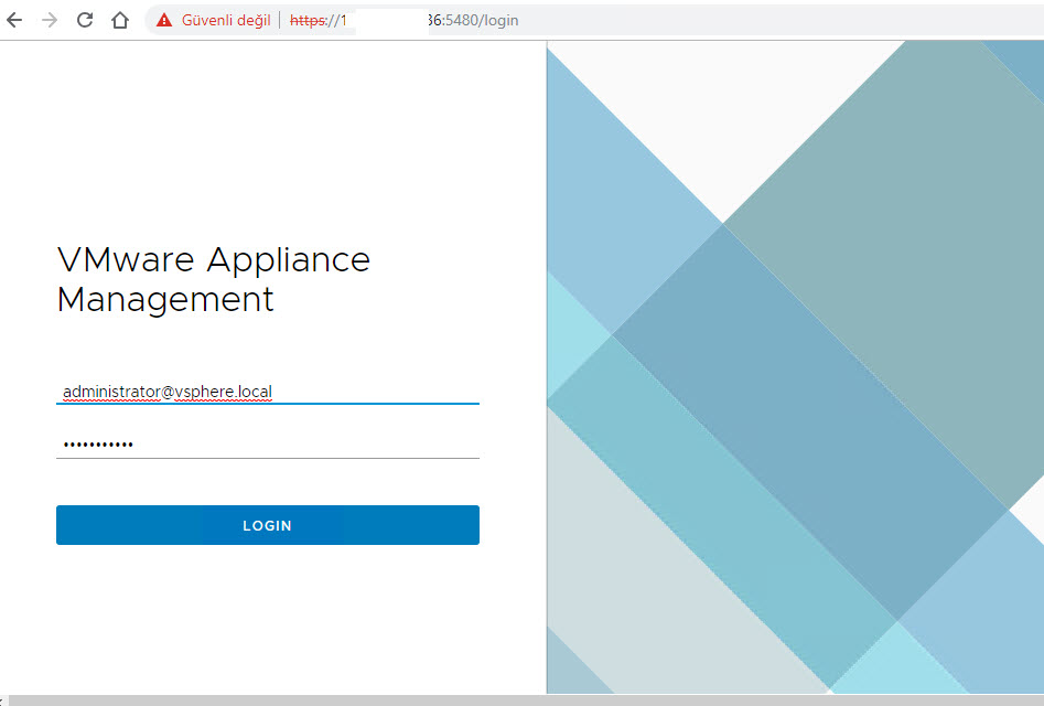 Aşağıdaki resimde’de gördüğünüz üzere browser’ımızı açtıktan sonra https://ipadresiniz:5480 adresinden kullanıcı bilgilerimizi yazarak giriş yapıyoruz.