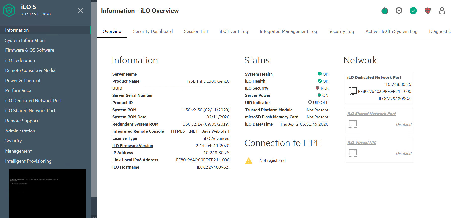Information Overview bölümünde sunucu bilgileri,durumu ve network bağlantıları dashboard’ını görebilirsiniz. Information bölümünde Server Serial Number bilgileri,Ürün modeli,versiyon bilgileri bulunmaktadır.