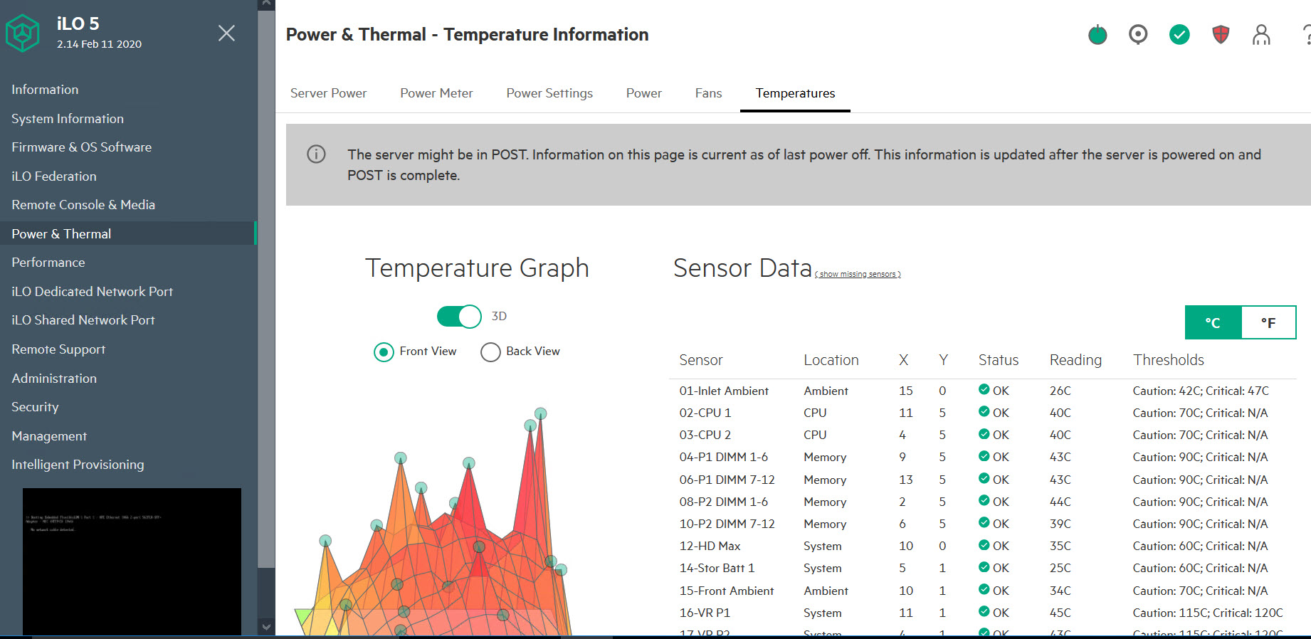 Sıcaklık bilgileri bölümünde ise, sıcaklık grafiği ve konumunu gösteren bir tablo içermektedir. Sunucu kasasındaki sıcaklık sensörlerinin durumunuda göstermektedir.