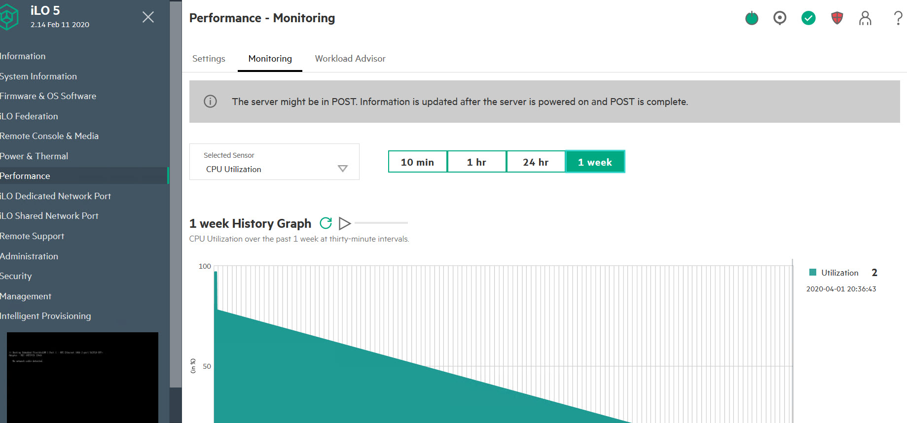 Sunucu’nun cpu,memory performansını son 1 haftalığa kadar görebiliriz.