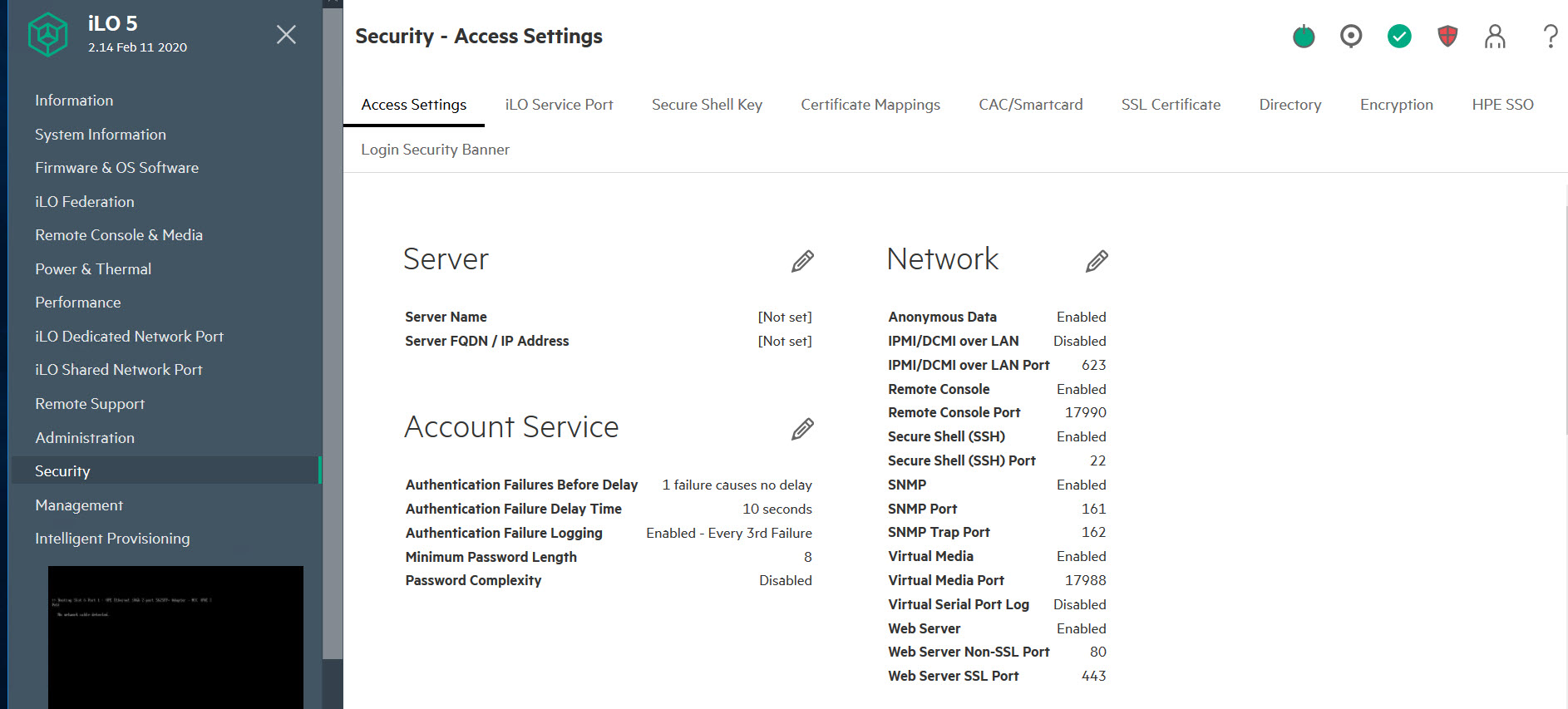 Hizmet ayarları ve erişim seçenekleri dahil iLO erişim ayarlarını değiştirebilirsiniz.
