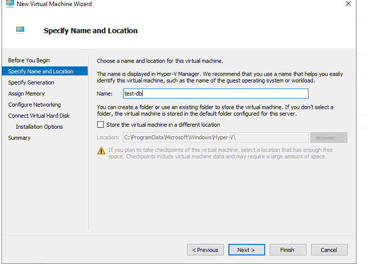 Specify Name and Location bölümünde ise name kısmına sunucumuz hangi isimde gözükmesini istiyor isek onu yazıyoruz.