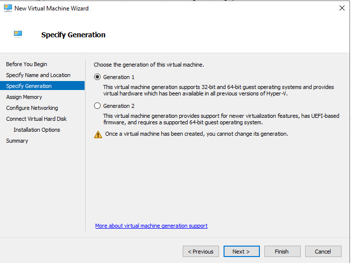 Generation 1;Hyper-V’nin önceki sürümleriyle aynı donanımı sağlamaktadır.