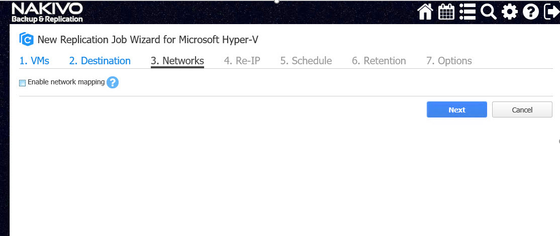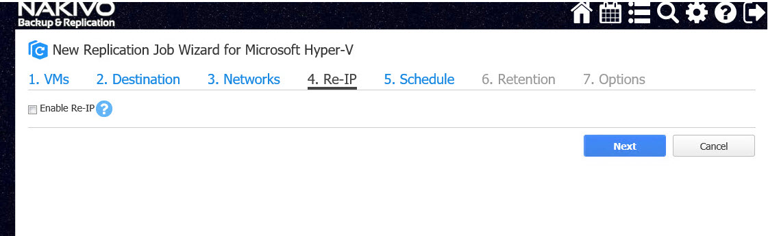 Burada sunucumuzu karşı tarafa replikasyonu yaptıktan sonra ip ayarlarını buraya girebiliriz. Ben sunucumu karşı tarafa replikasyon olduktan sonra ilgili vlan’ı kendip atayıp , bu şekilde manuel ip vereceğimden dolayı bir değişiklik yapmadan next diyerek devam ediyorum.