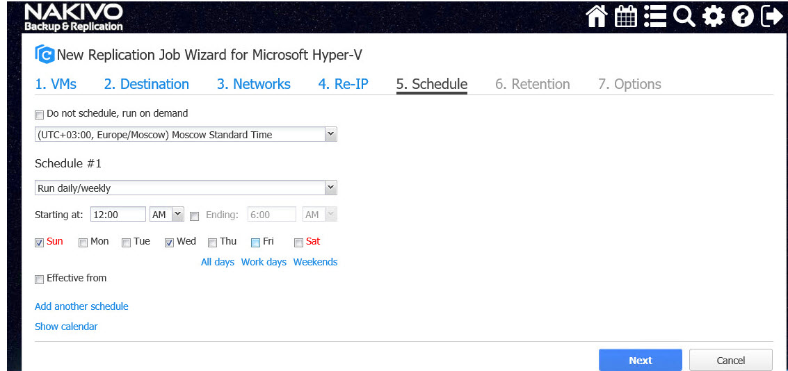 Schedule ‘da ise hangi günlerde replikasyon olsun , saat v.s. ayarları buradan yapabilirsiniz. Her pazar ve çarşamba günü saat 12:00 olarak ayarlayıp next diyerek devam ediyoruz.