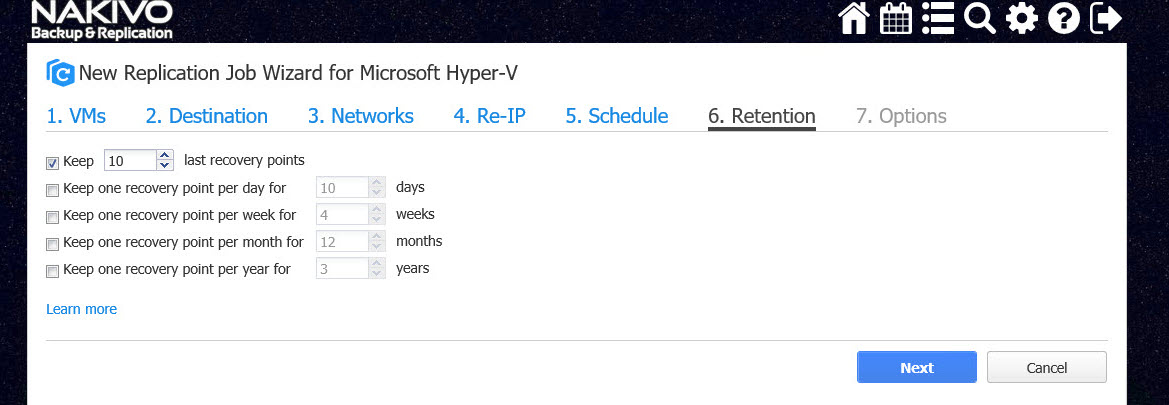 Retention’da ise replikasyonu yaptıktan sonra kaç gün öncesine dönebiliriz , ben 10 olarak bırakıyorum. Sizin yapınızda hangisi uygun ise onu’da seçebilirsiniz.Next diyerek devam ediyoruz.