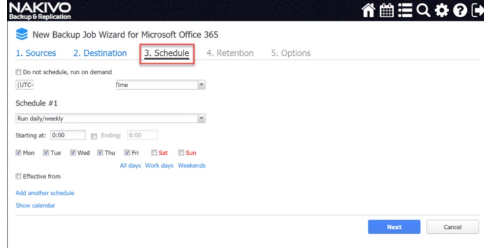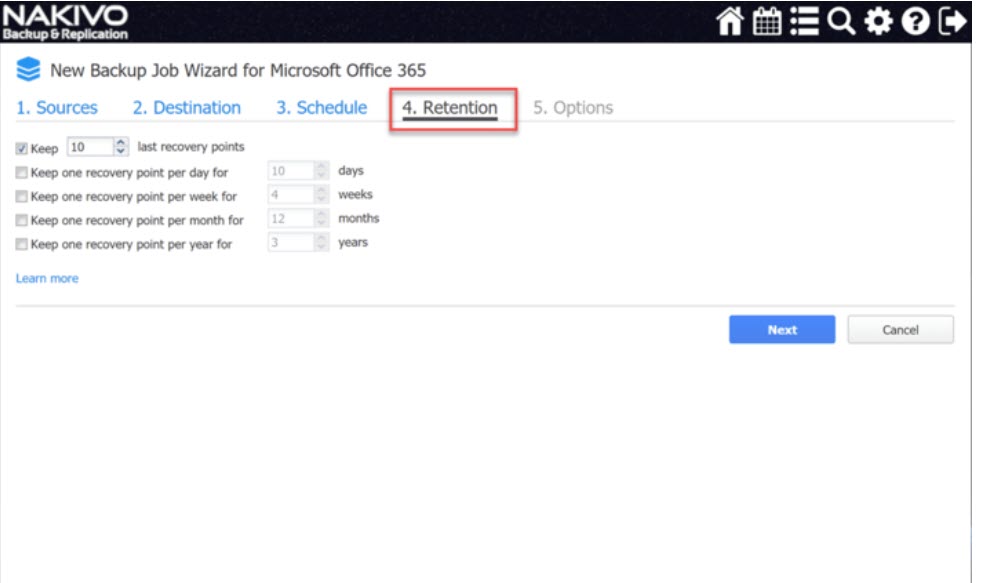 NAKIVO’da yedeklemek için kaynak Office 365 posta kutusunu seçin. NAKIVO’da Office 365 yedekleme işi oluşturmak, VM yedeklemeleri için NAKIVO kullanmaya alışkın olanlara çok tanıdık gelecektir.