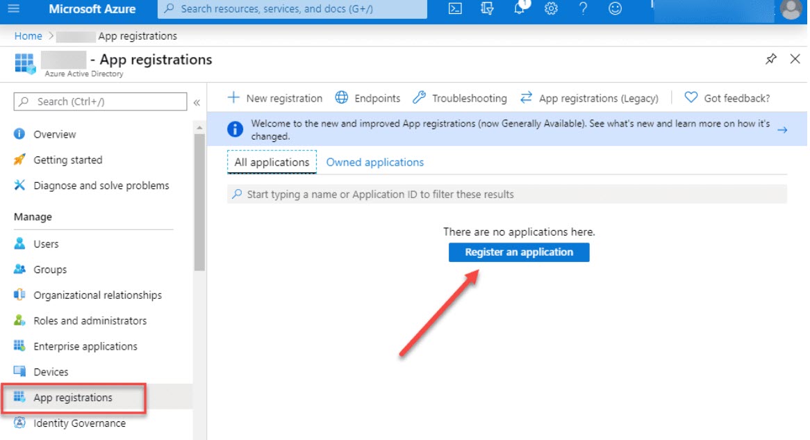 Yönet grubu altındaki Uygulama kayıtları dikey penceresine tıklayın . Ardından Bir uygulama kaydet’i tıklayın .