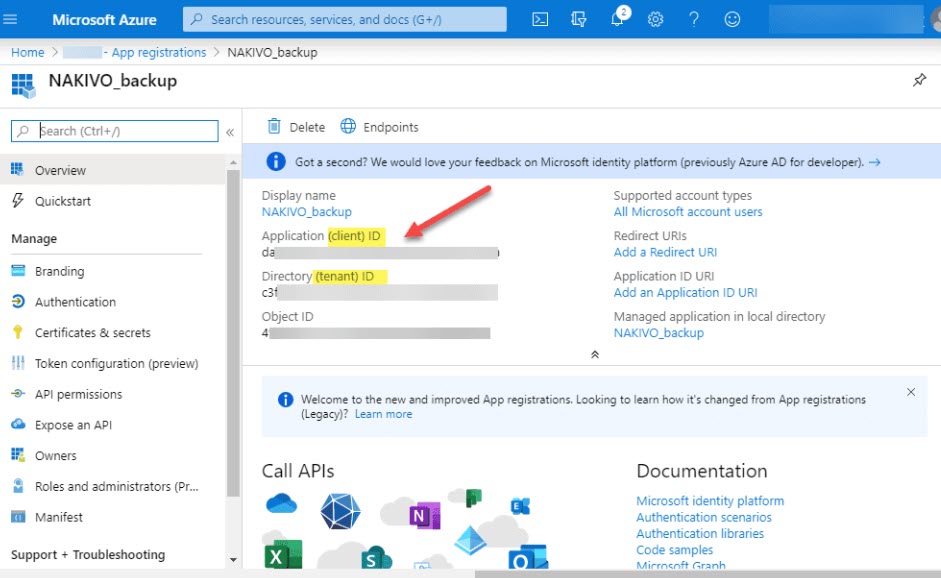 Bu bilgiler, Azure portalından almamız gereken bilgilerdir. Yaptığım şey, NAKIVO ekranımı bu adımda açık bırakmaktı. Azure boyutunda yapılandırmayı tamamlamak için gereken adımlar, Office 365 ortamını destekleyen Azure Active Directory izinlerine sahip olduğunuz sürece yaklaşık 5 dakikalık çalışma anlamına gelir.