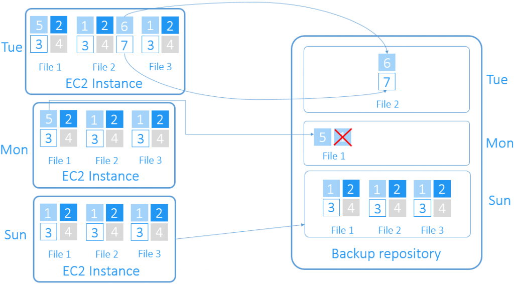 Bundan sonraki her artışta, yalnızca EC2 örneğinde yapılan son iş çalıştırmasından bu yana yapılan değişiklikler yedek havuzunuzda saklanır.