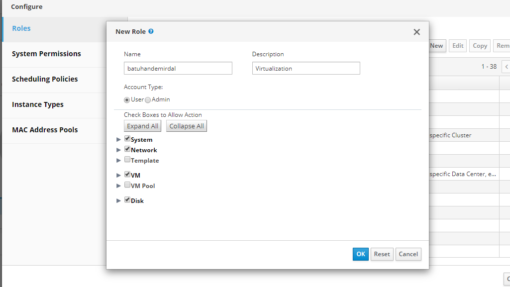 Red Hat Sanallaştırma ortamınız için kullanıcılar, roller, sistem izinleri, zamanlama ilkeleri ve MAC adres tanımlamaları gibi bir dizi genel kaynağı yapılandırmanıza olanak tanımaktadır. Burada, kullanıcıların ortamdaki kaynaklarla erişim girme şeklini özelleştirmenize olanak tanımakta ve birden çok datacenter’lara uygulanabilecek seçenekleri yapılandırmak için merkezi bir konum sağlamaktadır.