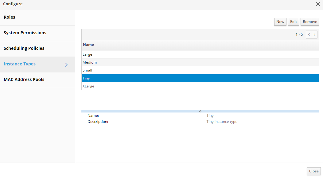 Instance Types menüsünde ise, sanal makinanın donanım yapılandırmasını tanımlamak için kullanılır. Sanal makina oluşturur iken veya düzenlerken type burada oluşturduğumuz alandan seçilmektedir.
