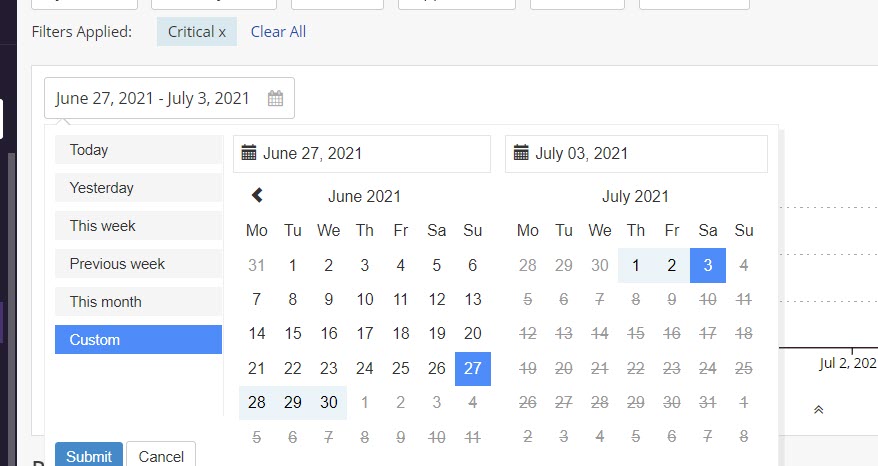 Ayrıca tarih aralığını belirterek geçmiş günlere,aylara veya yıllara’da geçmiş sorunları görebilirsiniz.