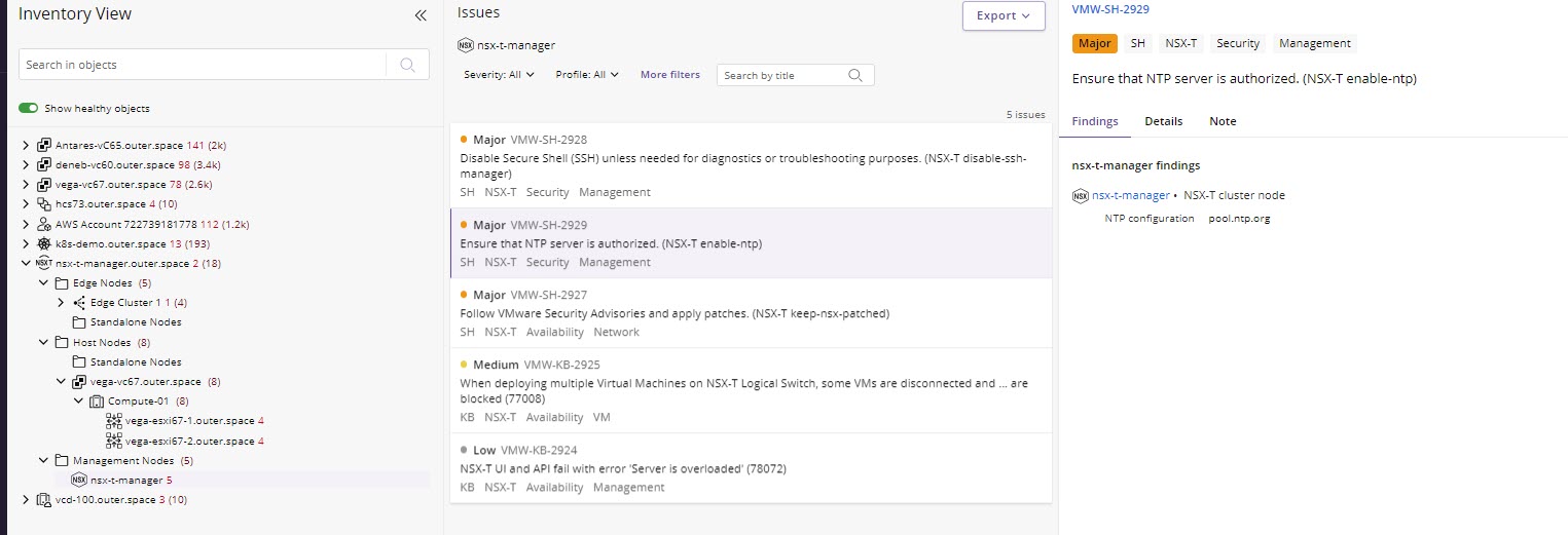 Yöneticilerin yönetim düzlemini güvenli bir şekilde yapılandırmasını sağlayarak, örneğin yöneticinin sürüm çakışmalarını çözmesi veya parola karmaşıklığını tanımlaması veya açık bağlantı noktalarını bulması gerekip gerekmediğini şeffaf hale getirerek NSX-T ortamının güvenliğini sağlamaya yardımcı olmaktadır.