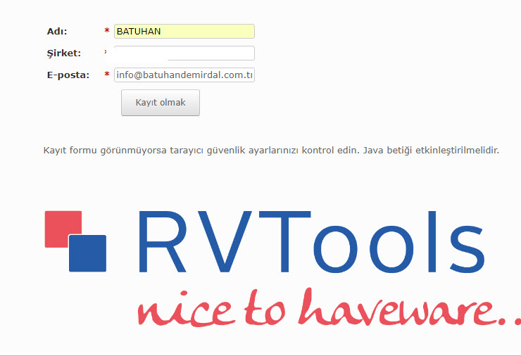 Bu formu doldurduktan sonra kayıt olmağı tıkladığımızda rvtools msi paketi inmeye başlayacaktır.
