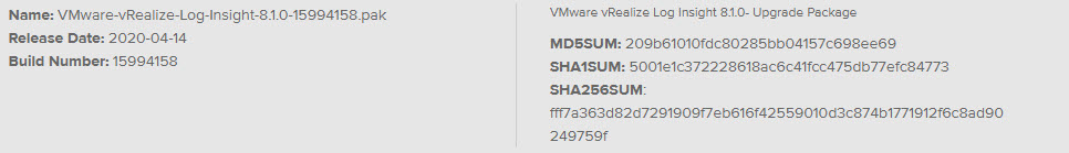 VMware vRealize Log Insight güvenlik açığı sebebi ile aşağıdaki *.pak dosyasını ortamınıza geçmenizi öneririm.