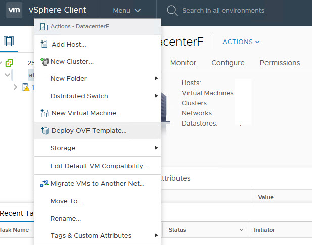 İndirdiğimiz skyline ovf’sini vSphere Client’imıza kurulumunu yapacağız. vSphere Client sayfamıza giriş yaptıktran sonra Menu/Deploy OVA Template tıklayıp , ovf dosyamızı seçiyoruz.