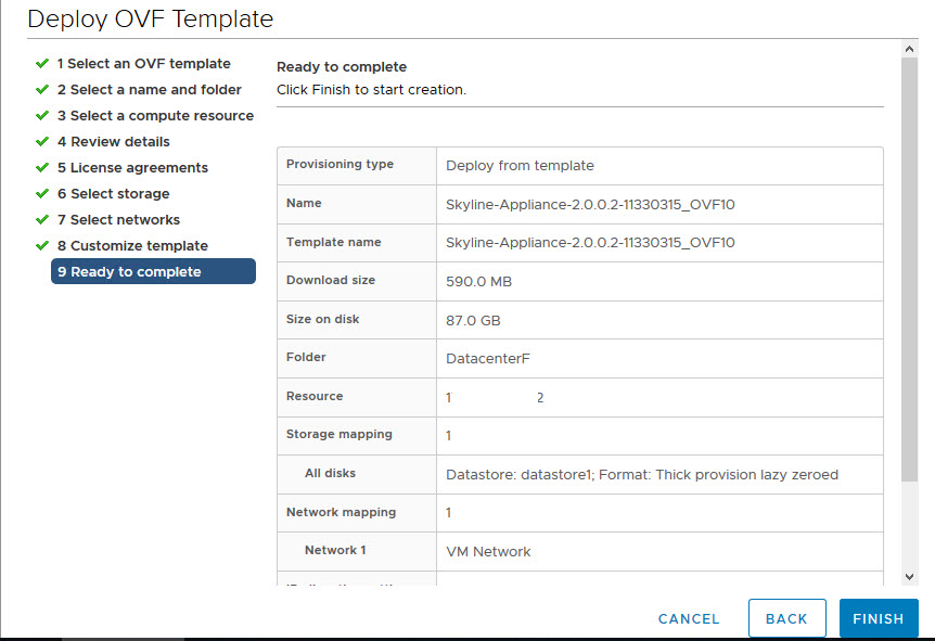Ready to complete , son kontrolleri yaptıktan sonra finish diyerek ova’mızı vcenter’da oluşturmaya başlamış oluyoruz.