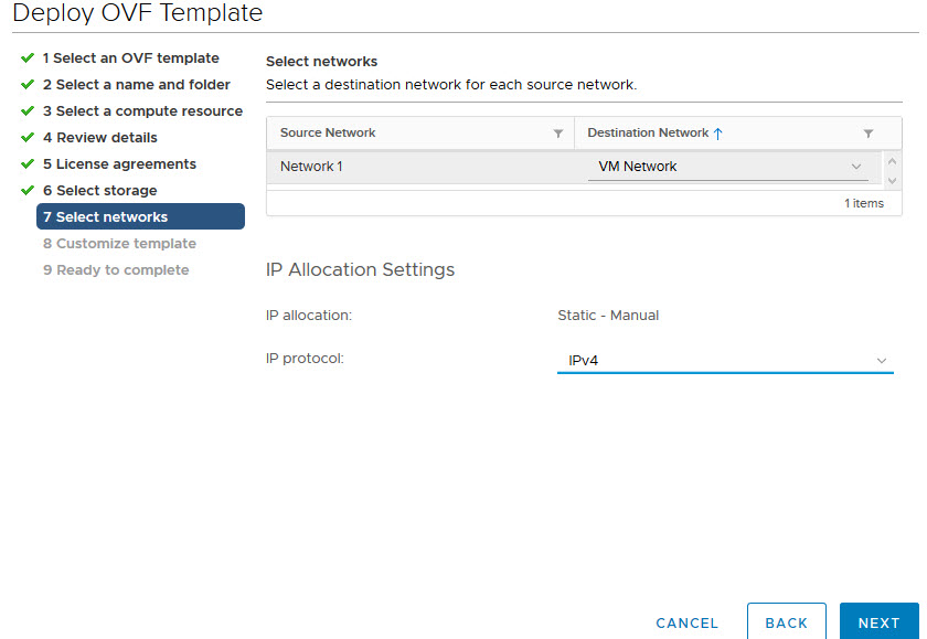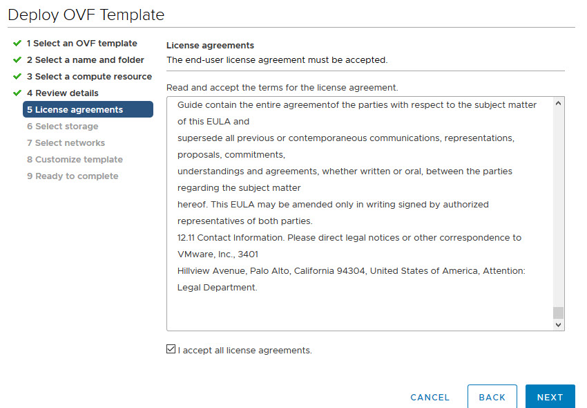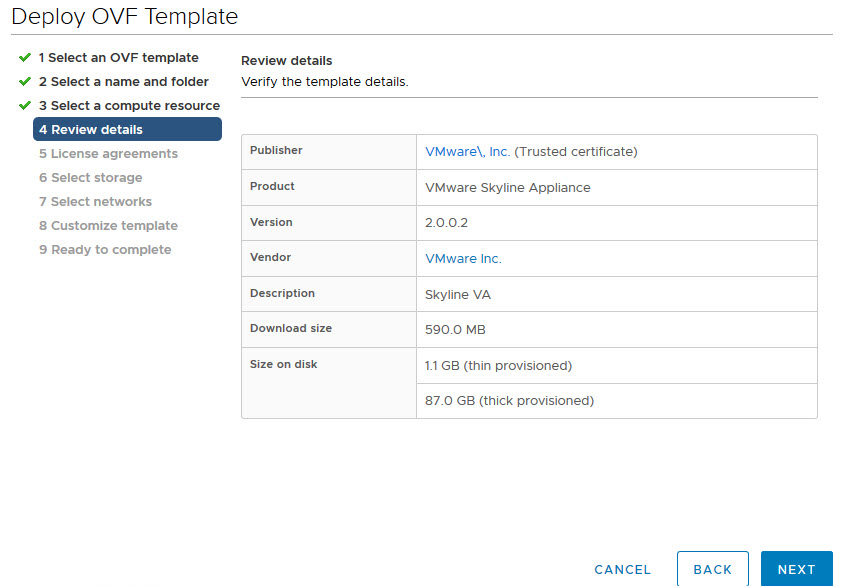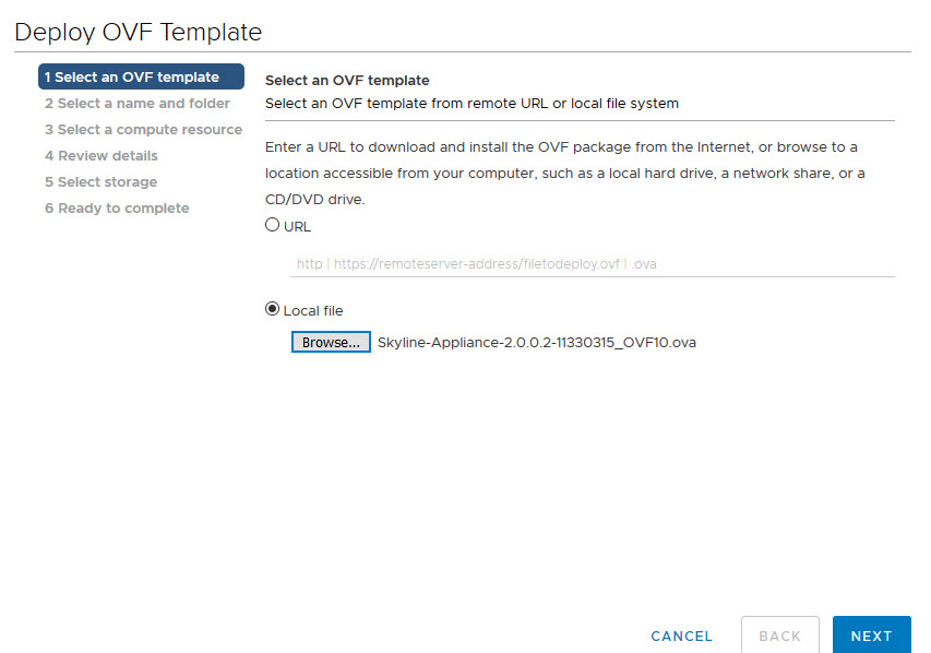 Select an OVF template ‘den Local File’dan ova dosyamızı seçtikten sonra next diyerek devam ediyoruz.
