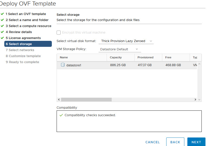 Select storage bölümünde ilgili datastore ‘muzu seçiyoruz.
