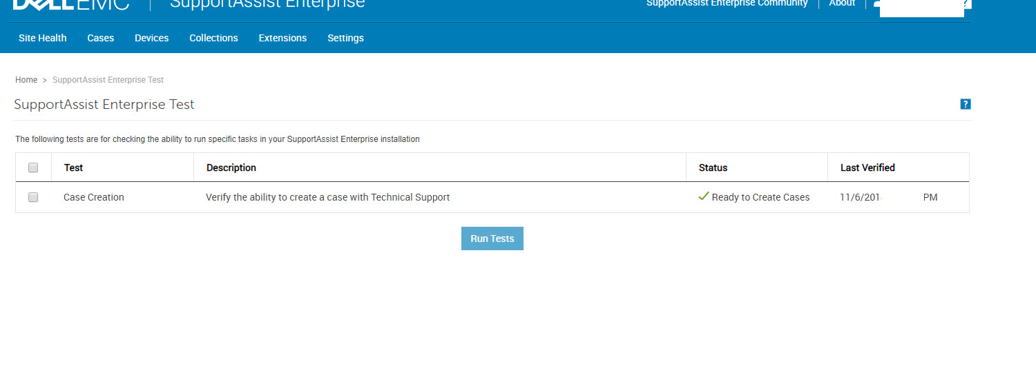 Otomatik çağrı oluşturmayı bağlantısını test etmek için admin/SupportAssist Enterprise Test tıklayarak , açılan sayfada case creation seçerek Run Tests yapabiliriz.