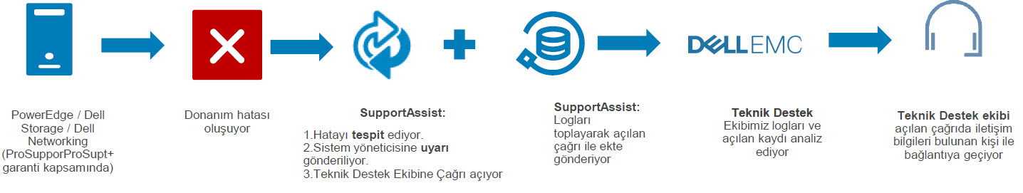 SupportAssist Enterpise ; sistemin hata durumunda otomatik olarak çağrı açmasına yarayan bir yazılımdır(ProSupport/ProSupportPlus anlaşmasında geçerlidir). Dell’in kullanımı kolay olan bu proaktif destek sistemi arızaları daha kısa sürede tespit edilmesini sağlayıp sorunu çözme sürecini hızlandırır.