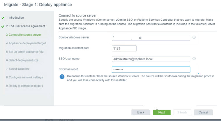 Migrate asistanı, Windows vCenter Server’ınızın uyumlu ve taşıma işlemine hazır olduğunu doğrulamak için ön kontrolleri çalıştıracaktır.