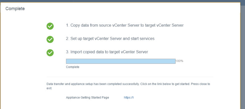 Finish diyerek migrate işlemi başlamış oluyor. İşlem bittikten sonra 6.5 appliance açılacaktır.