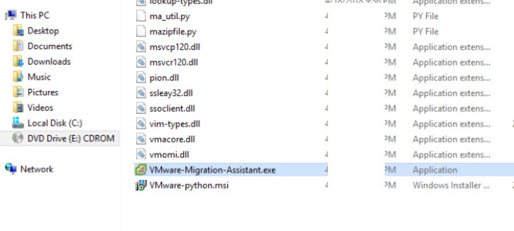 Burada Migration-Assistant uygulamasını ( VMware-Migration-Assistant.exe) başlatıyoruz.