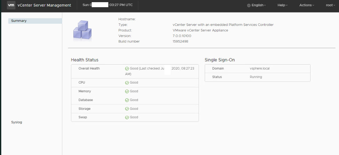 Giriş yaptıktan sonra karşımıza vCenter Server Management sayfası gelecektir.