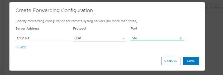 Create Forwarding Configuration bölümünde Syslog server’ın ip adresini ve bağlanacağı protokolü ve port numarası belirledikten sonra save diyerek kayıt ediyoruz.