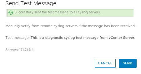 Syslog server’a erişimi test etmek için, send test message’yı tıklıyoruz.