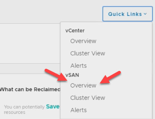 vROPS sayfamıza giriş yaptıktan sonra sağ tarafta bulunan Quick Links’i tıklıyoruz.Buradan vSAN-Overview tıklıyoruz.