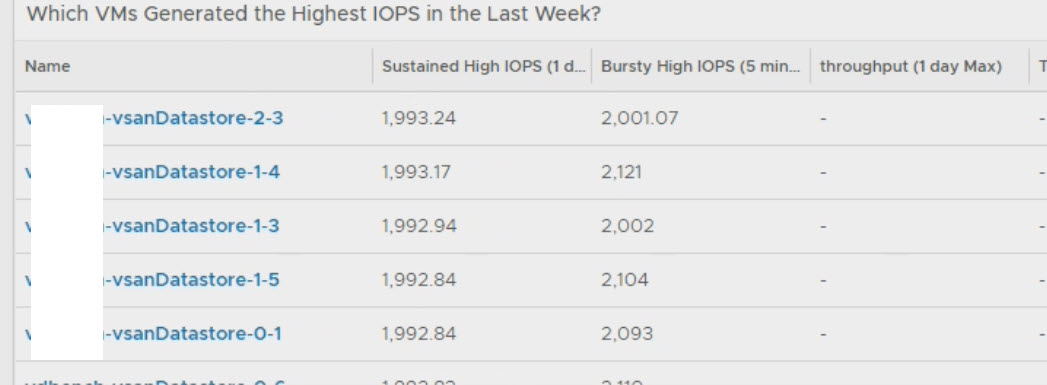 Sanal sunucunun IO üreten disk dashboardunu , vm seçtikten sonra monitor>performance>vSan virtual machine seçilir.