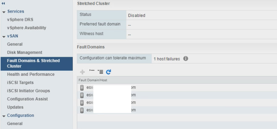 Fault Domains and Stretched Cluster menüsünden Stretched Cluster’ı disable durumuna getiriyoruz.