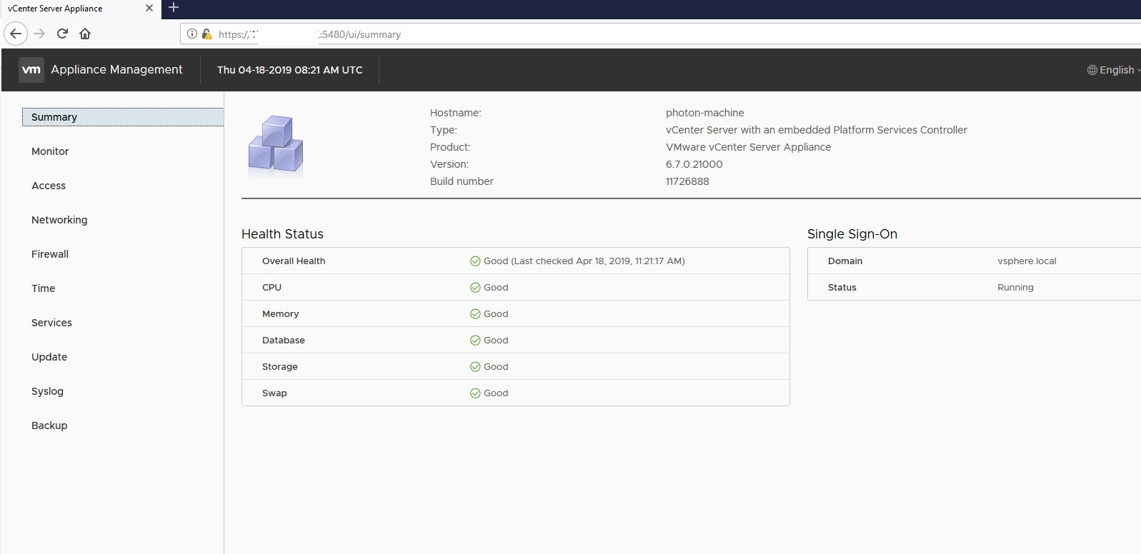 vCenter Server Appliance update 2’ye geçmek için , https://vcenteripadresi:5480/ şeklinde giriş yapıyoruz. Summary ekranında mevcut versiyon 6.7 Update 1 olarak gözükmektedir.