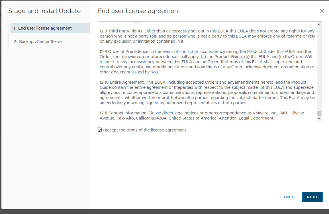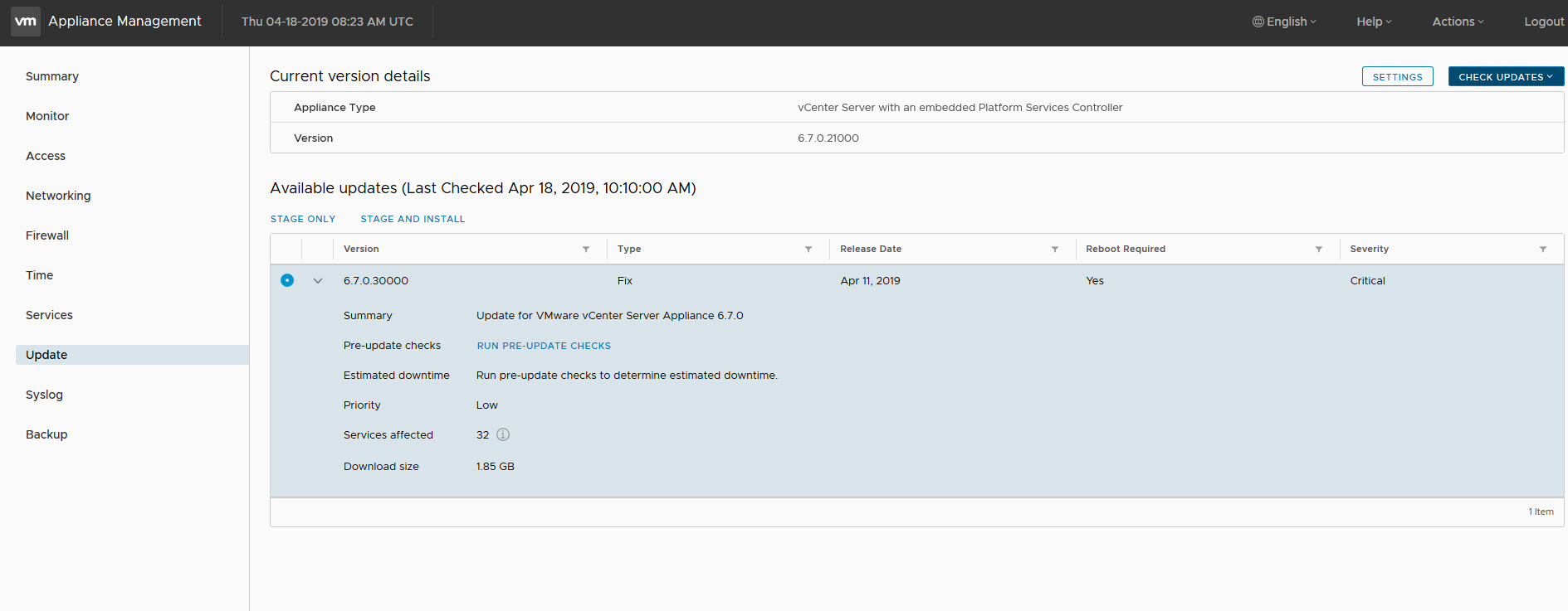 Yükleme bittikten sonra tekrar sayfayı yenilediğimizde Version kısmında Vmware Appliance 6.7. Update 2 paketine geçmiş oluyoruz.