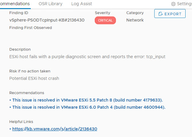 Finding ID: Bulma Kimliği, izlenen ortamda tanımlanmış bilinen bir soruna özgüdür. Soruyla ilgili KB makale numarasıyla birlikte sorunun kısaltılmış bir açıklamasını içermektedir. Finding ID, yalnızca açıklamada PSOD içeren kimliklerde aranabilir . Ayrıca, bu belirtilen sorunun ciddiyetinin bir göstergesidir.
