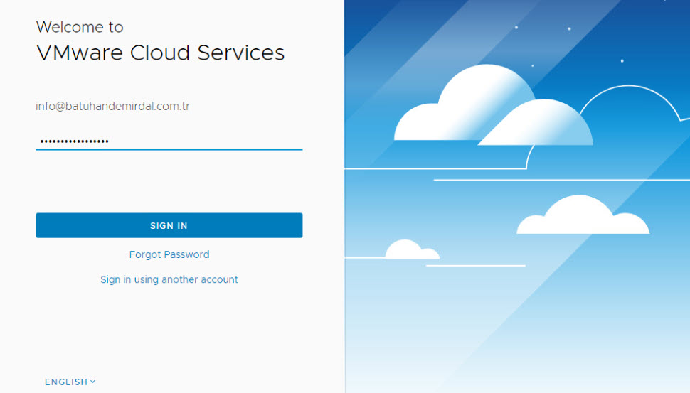 Vmware Cloud Services’te Skyline Advisor proaktif bulguları inceleyeceğiz. Cloud Servis’e kurumsal hesabımız ile üye olduktan sonra giriş yapıyoruz.
