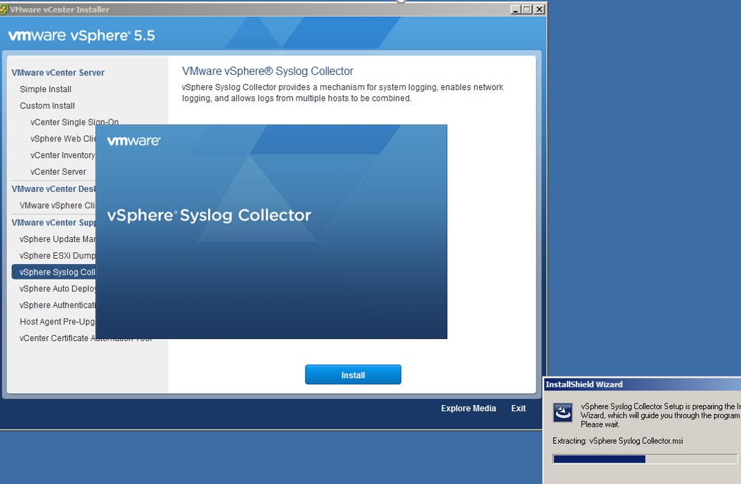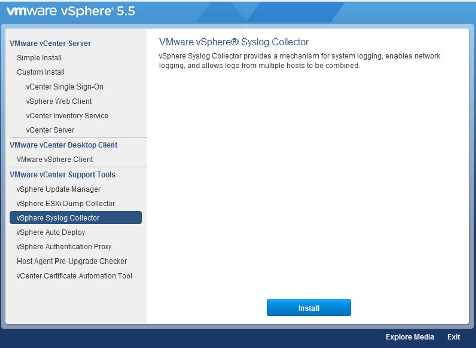 – Aşağıda gösterildiği gibi birden fazla seçenek alacaksınız. VSphere Syslog Collector’a tıklayın .
