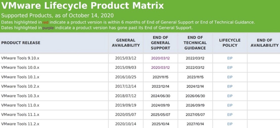 VMware Tools, sanal makinenin genel performansını artırmak veya sanal makinelerin güvenli, korunaklı ve güçlendirilmiş olmasını sağlamak için vSphere ortamının vazgeçilmez bir bileşenidir. VMware araçları her zaman önemli ve kritik bir rol oynamıştır.Şimdiye kadar, VMware Tools, vSphere’in bir alt kümesi olarak geliştirildi ve yayınlanmıştır.VMware Tools destek sonu politikası açıkça belgelenmemiştir.Belirli bir VMware Tools sürümünün desteğin ne zaman sona ereceği VMware Tools destek sonu politikasıyla ilgili net talimatlar olmadan, Sanallaştırma adminleri VMware Tools planlamak ve yükseltmek konusunda zorlanmış oldu.VMware Tools bağımsız olarak mevcuttur ve my.vmware.com portalın’dan ayrı bir ürün olarak indirilebilir. Bu, esasen VMware Tools‘un VMware Lifecycle Product Matrix‘te de yer alacağı VMware Tools yaşam döngüsü hakkında tam görünürlük sağlayacağı anlamına gelmektedir.