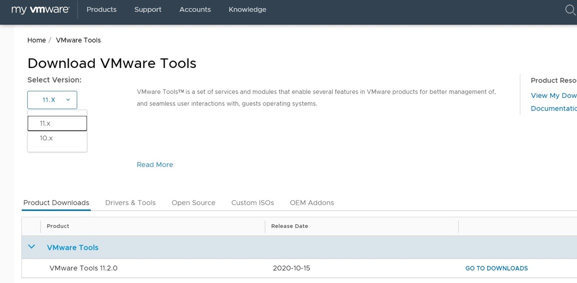 Daha önce, VMware Tools, vSphere indirme sayfasındaki “Drivers and Tools” sekmesi altında listeleniyordu, ancak bu değişiklikle birlikte, en son sürüm ayrı bir ürün olarak “All Download” sekmesi altında bulunabilir.