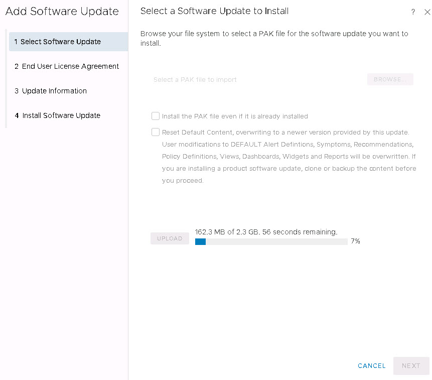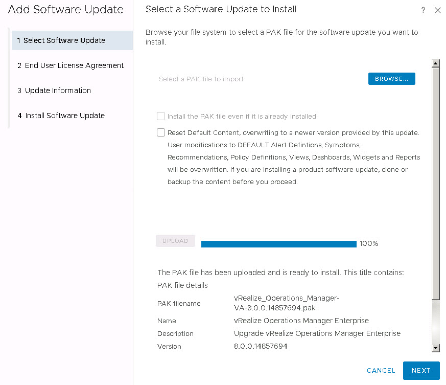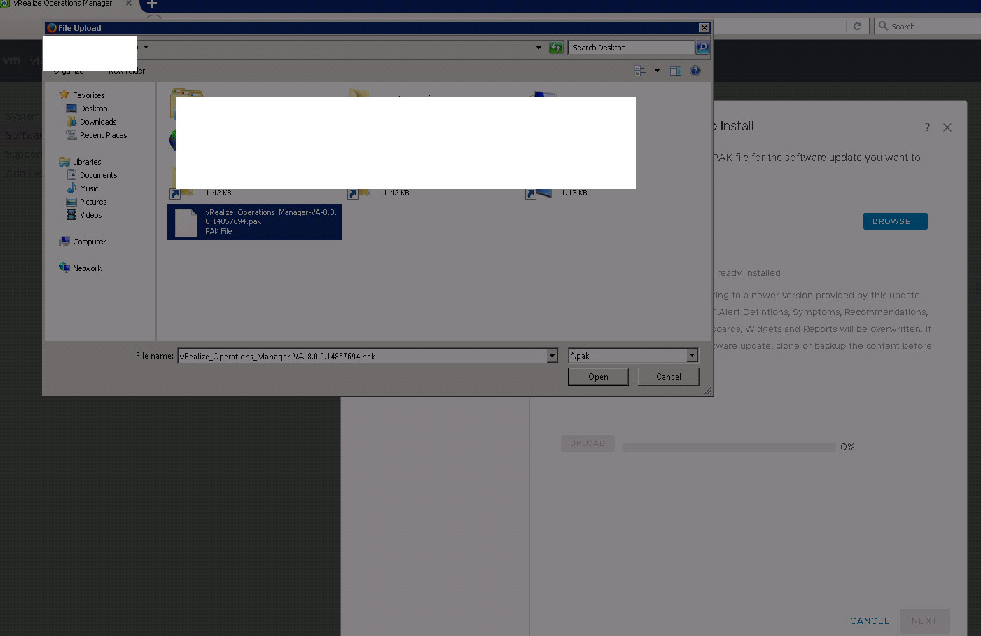 www.myvmware.com adresinden indirdiğimiz vRealize Operations Manager.pak paketini seçiyoruz.