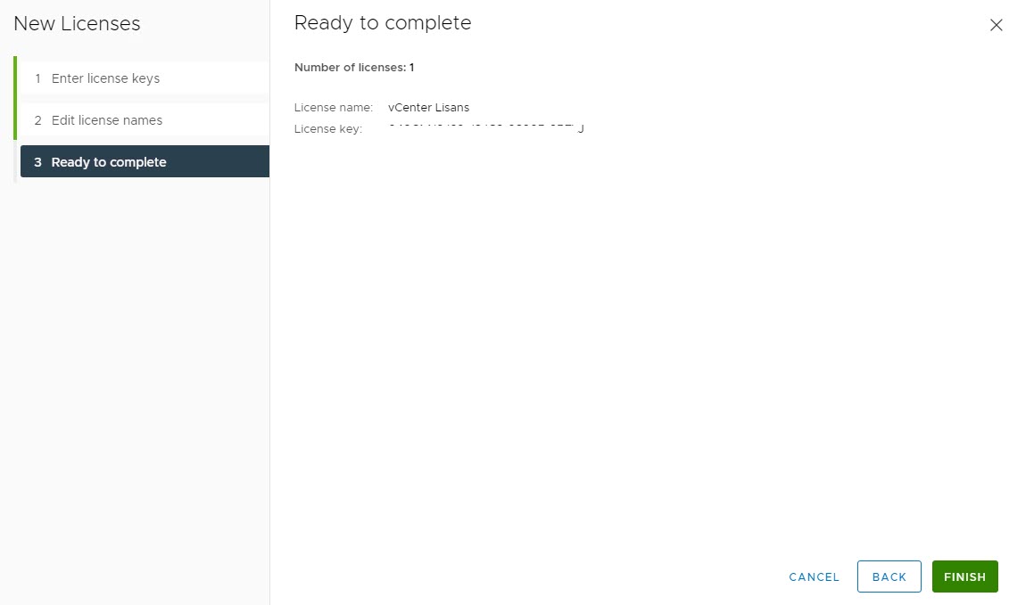 Finish dedikten sonra lisans ekleme işlemimizi tanımlamış oluyoruz. Aynı şekilde ESXi lisansımızı da ekliyoruz.