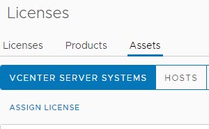 Assets > Hosts > Assign License kısmından ise ESXi host lisansımızı Assign ediyoruz.