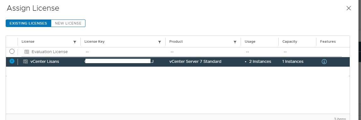 vCenter Server System’den Assign License bölümünden girdiğimiz anahtarı Assign ediyoruz.